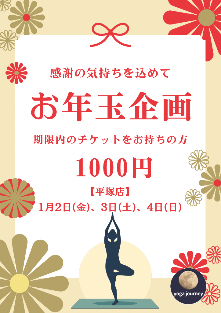 来年も早々1/2よりヨガクラスがお年玉企画としてスタートします。お時間がある方は是非ご参加頂き、良いスタートになるようサポートさせていただきます。
